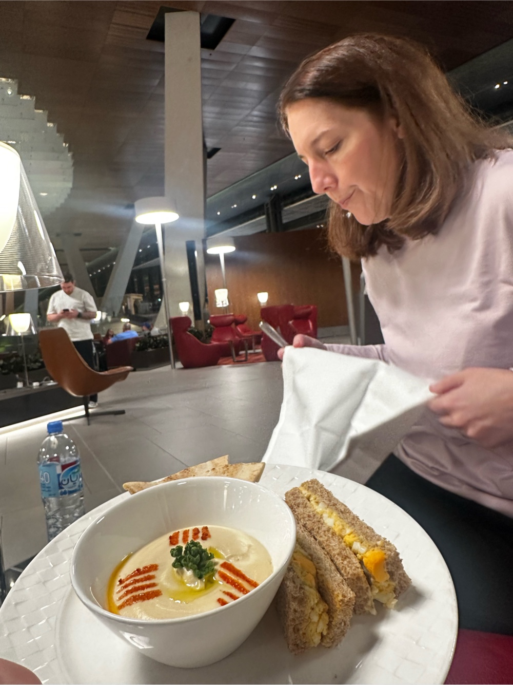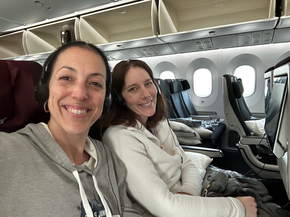 We both made it to Doha on Thursday, and what a beautiful airport - very much what I expected from a Middle East hub - bougie, brand name, boutique-y and bustling. The first challenge was to find Liz, then kill about 8 hours without falling asleep so we could sleep on leg 2 - Doha to Kilimanjaro. We found the lounge that I had a pass to and were able to shower which helped us feel half normal.