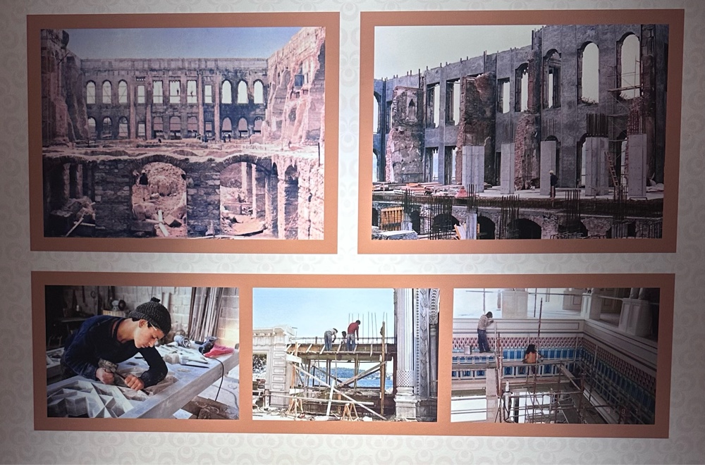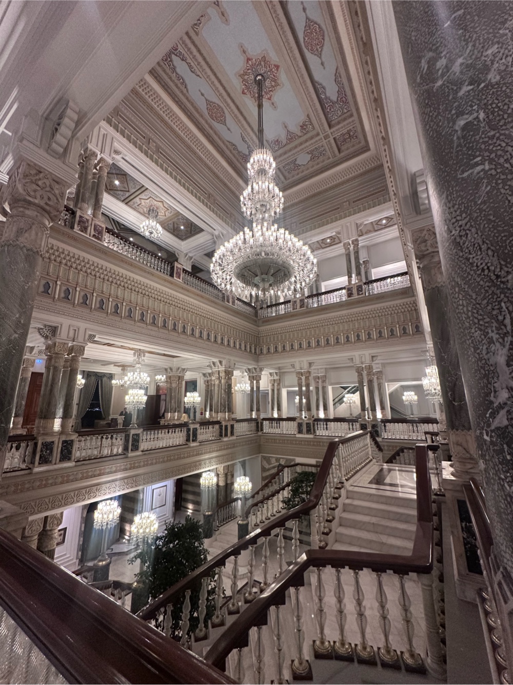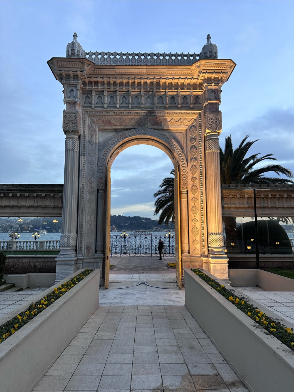 The Çiruğen Palace is right along the waterfront and it now a hotel that has a more modern building along with the historic palace. It was recommended to us for sunset and didn’t disappoint. We got coffee and dessert which was $62, did I mention this was a bougie hotel? It has another amazing history. It was originally built by an Ottoman Sultan and lived in by several sultans after that. In 1910 there was a crazy fire due to faulty wiring and it burned to the ground. It was in ruins, and only the exterior walls remained until the early 80s, when it was completely restored and turned into a luxury hotel. After our coffee we explored into the restored palace and it was breathtaking. In our 3 day old clothing we felt very out of place as there were a few dressed up valentines couples visiting for dinner. Another very cool restoration project though.