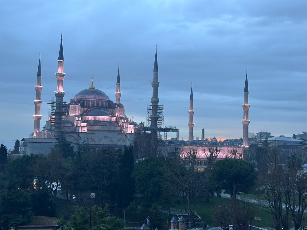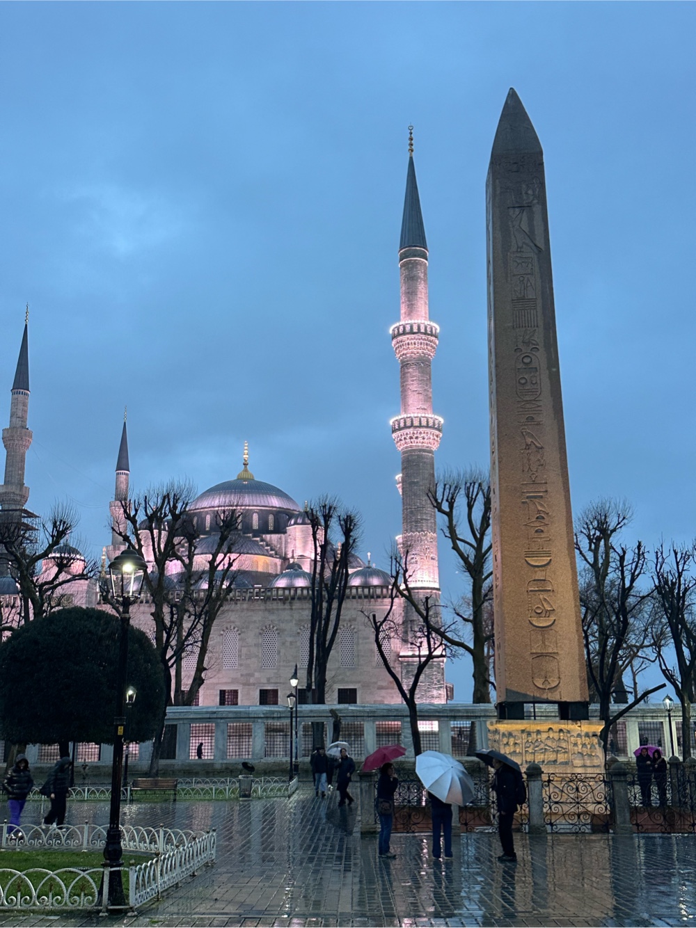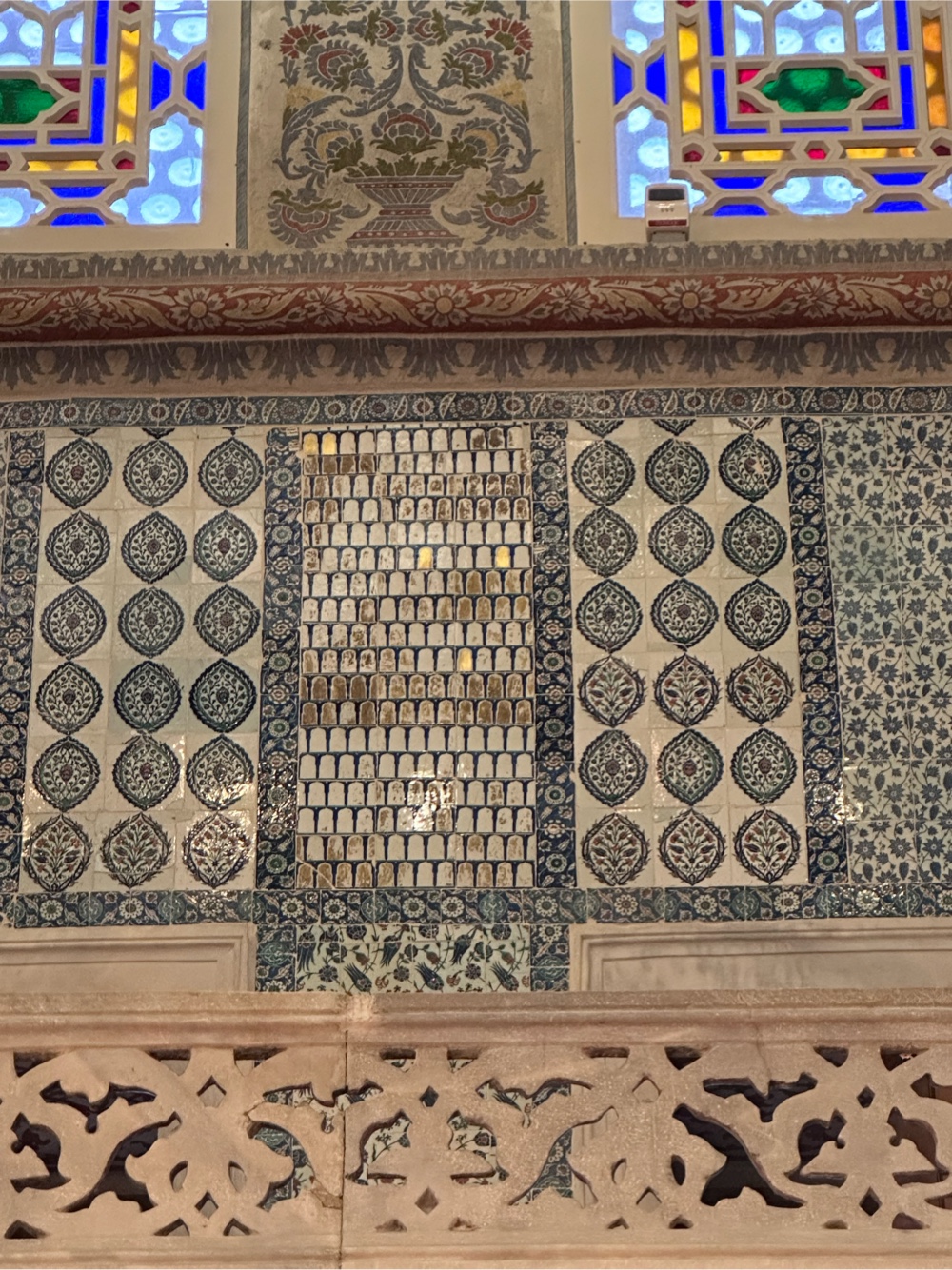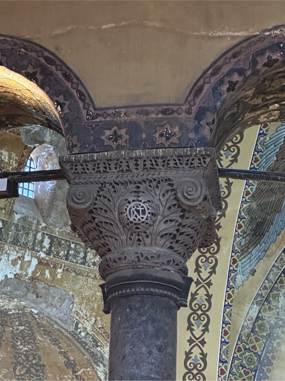 Number one on my list was to see Hagia Sophia, because I had studied it in architecture school and it has such a long history. So we got a guided tour to make sure I could ask all my questions. Not sure I would do that again actually, but it was very cool to see. The first church built on the site was built in 360AD as a Christian church by Constantine. It burned down and the there was another church built there in the 6th Century and that one was demolished in riots because the people who lived there were unhappy with the government. Then the third church built was Hagia Sophia. It was built by emperor Justinian and also was built in an epic 5 years using volunteer labor. The reason it was able to be built so quickly was because it, like the cistern, used columns and materials from other Roman buildings like the temple of Artemis from Ephesus, so you can call this another sort of adaptive reuse as well. It was used as a Christian church until the Middle Ages when the Ottoman Turks converted it to a mosque, covered the mosaic floor with carpet, and removed or covered any of the Christian iconography. Then in 1932 it was converted to a museum, the floor was uncovered, it was heavily restored by some folks from NY who uncovered a few beautiful gold mosaics from the 12th century, and it was opened to the public. Unfortunately in 2020 during covid it was converted back to a mosque which was a controversial move by the president (insert more shady business here) and so now the ground floor is only open for prayer. We were able to tour the upstairs gallery which was still cool but it’s a shame, because there aren’t even a lot of people who pray here (it is rumored that they are politicians), and there are so many other mosques including the blue mosque right next door. Also there was huge scaffolding covering the dome, and it will be there for at least 10 years! There was a huge earthquake in Istanbul in 1999 that did some damage to the structure but they are doing more cosmetic upgrades too. Side note, I definitely would not want to be in Istanbul for a 7.8 magnitude earthquake!