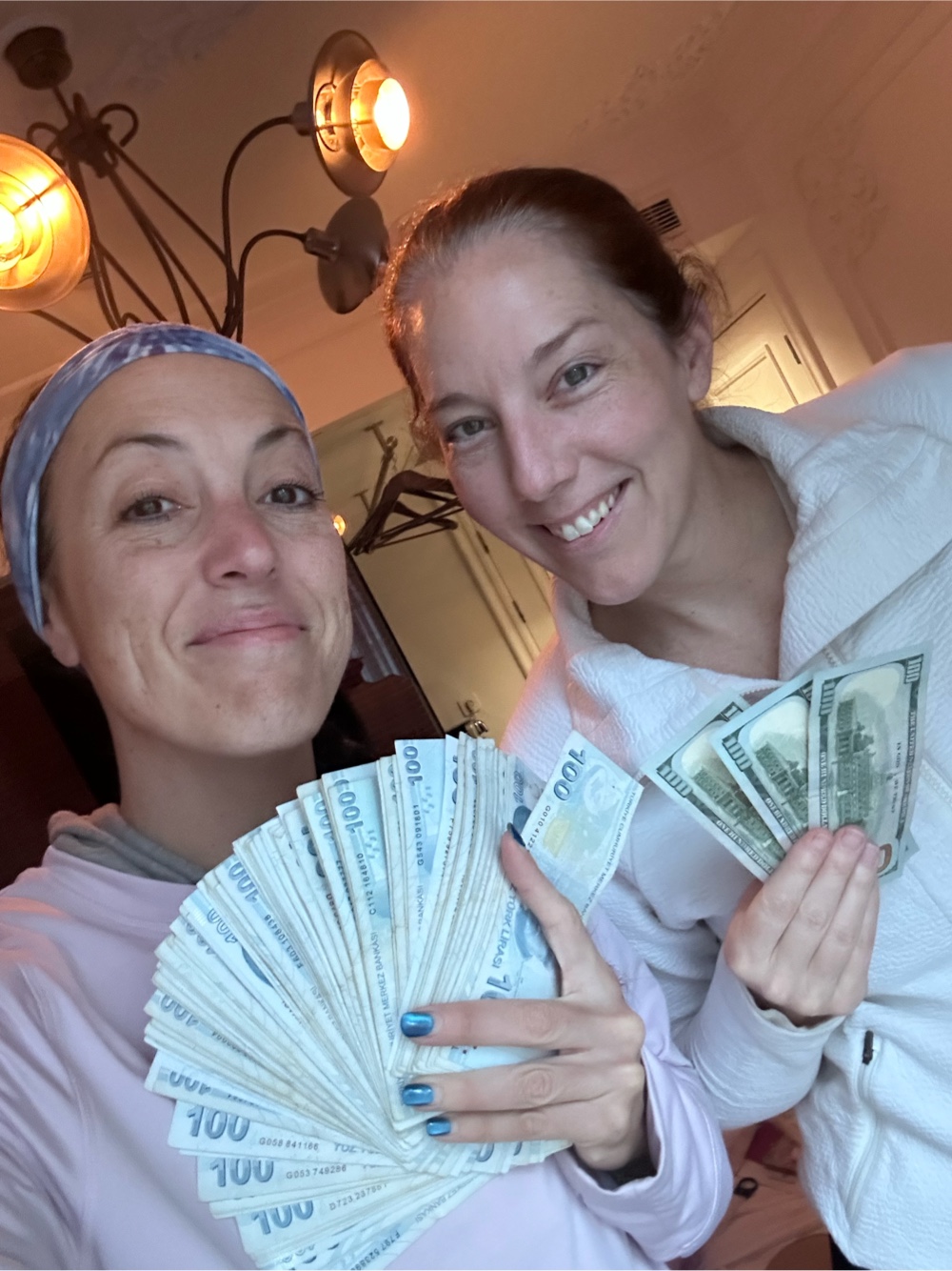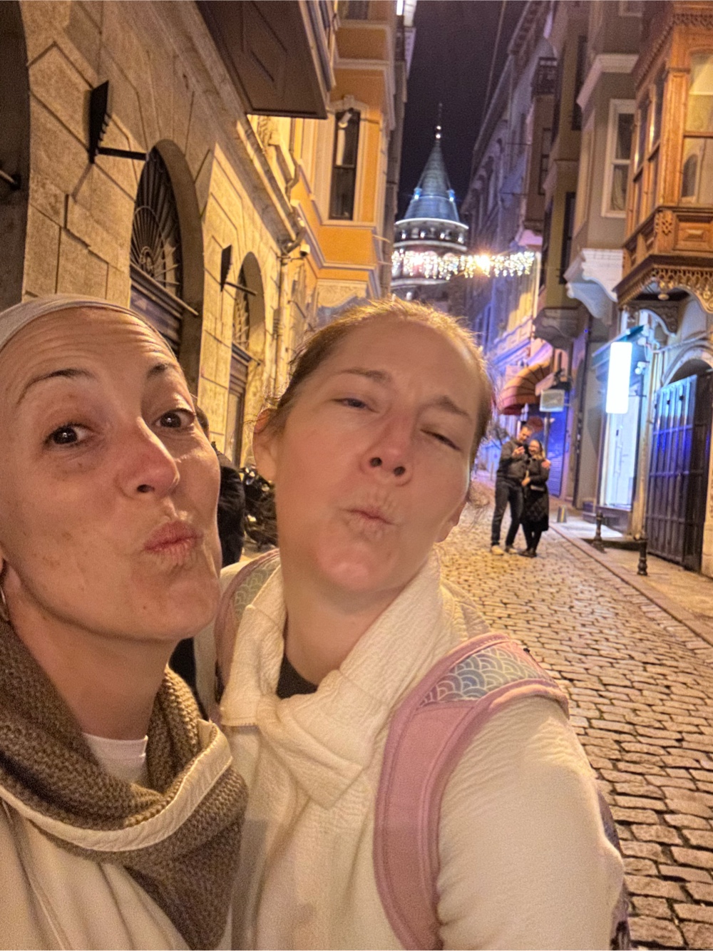 From there we went to the Seven Hills restaurant rooftop for a sunset photo and of course it started to rain. So we headed back to the hotel to drop off our stuff before our Turkish bath. Ağa Hamami was fairly close to our hotel and dates back to the 1400s. We walked into a basement and checked in, they have us Turkish towels and sent us into the main steam room and told us to lie on the hot marble for 10 minutes. This felt like forever but I did find a spout with cold water that made me not die. Then these women took us into another room with two marble tables where they did a full body scrub (think Korean spa-lite) and then a lather massage where they rubbed soap suds all over. They also washed our hair and then sent us upstairs for the oil massage and facial. Our skin felt amazing after! It was fun to think about women hundreds of years ago doing the same thing- the baths here were where women found wives for their sons, found out all the gossip, and socialized. On our way home we stopped at a Turkish fast food restaurant for a döner box which was sliced beef, French fries, pickles, lettuce and lots of mayo. Just delicious, I would pick that over McDonald’s any day.