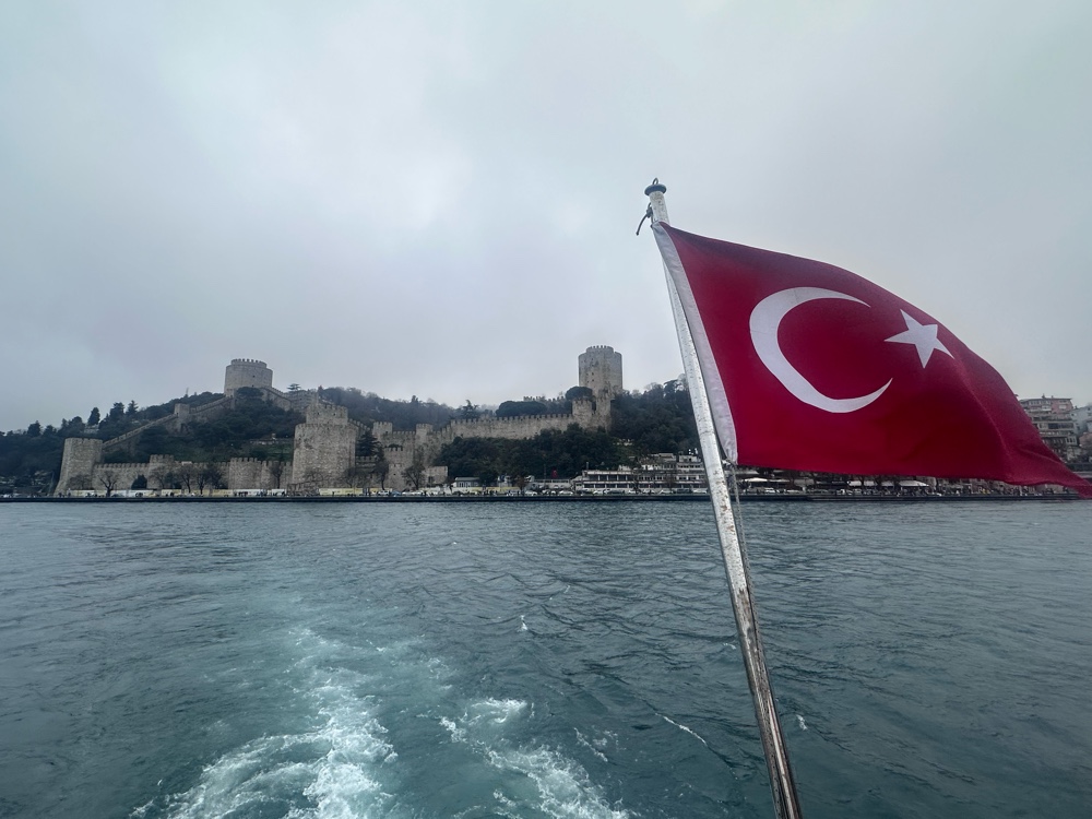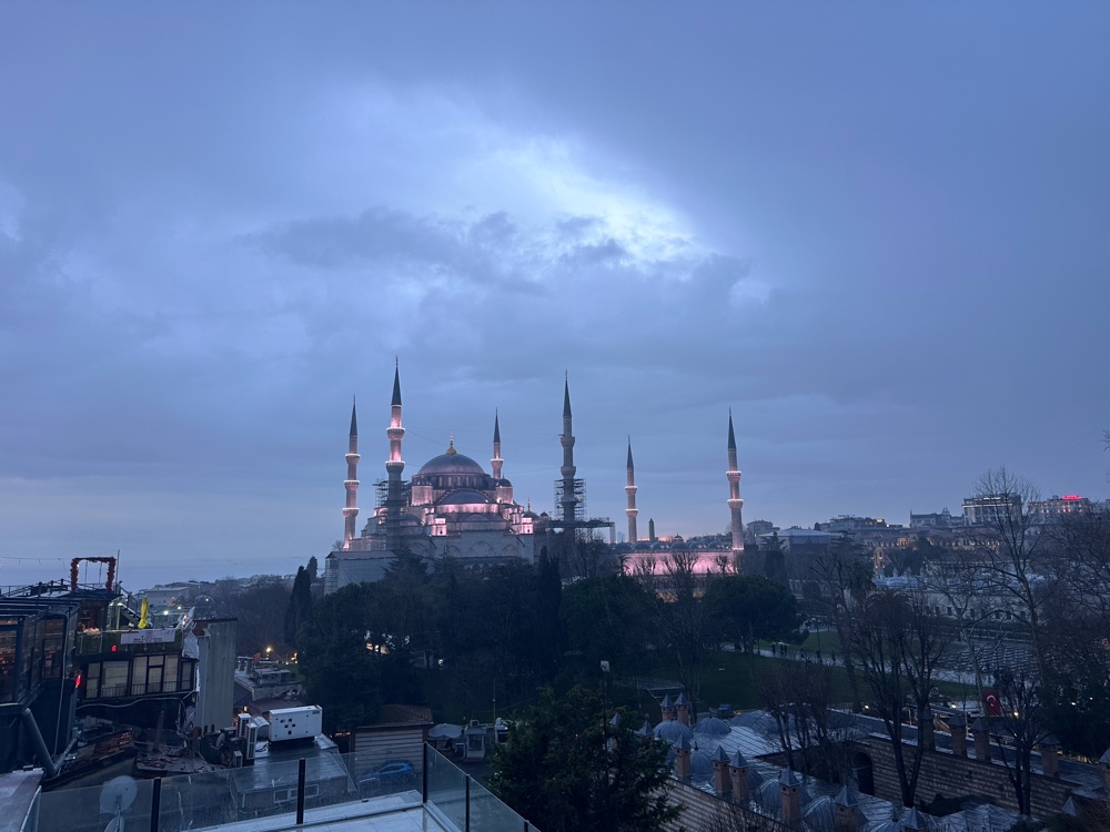 The second day was just as cold and rainy as the first but we didn’t let that stop us. We started on the rooftop of our hotel which was beautiful and overlooking the Bosphorus. I originally thought this was a river but it’s not. Istanbul is situated at the intersection of a few different bodies of water. It was a Roman settlement because of its strategic location between the Mediterranean Sea and the Black Sea, and the historic part of the city was jutting out into this water so it would have been very hard to attack the city without people knowing about it.