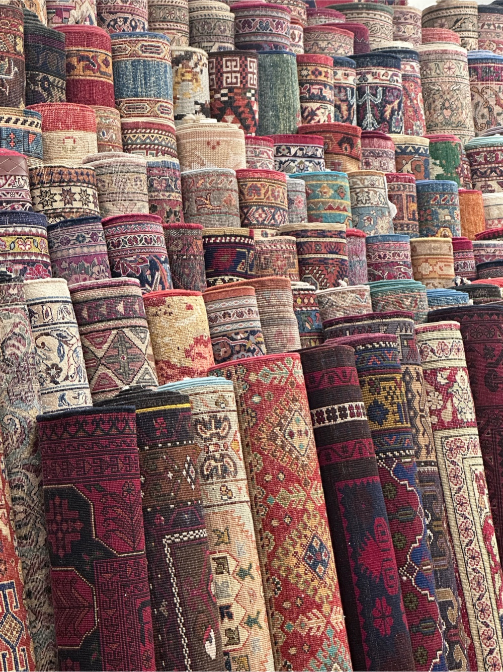 After Hagia Sophia our guide convinced us to go look at his “cousins” carpet showroom. It was totally a sales pitch and we didn’t bite, but it was really cool to see how the carpets are made and the different materials used to make them. Apparently the silk thread is the strongest. The carpet I bought in Singapore was about 1/3 the cost of the rugs they were selling here, but very pretty.