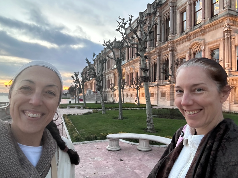 Once we left the hotel we headed over to the bazaars- the Egyptian spice bazaar is much smaller and we started there. So many vendors, many of which selling tea, but the tea was actually loose leaf tea, so you could tell what was in it. Liz bought a bunch of tea and we also tasted and bought some Turkish delight which is a sweet gelatinous treat with lots of different flavor options. I love pistachio everything here! The grand bazaar was completely overwhelming. You could absolutely get lost in there and there were hundreds if not thousands of stalls. We went shopping and bought some fun stuff, I bought a leather jacket, Liz bought a pretty embroidered top, and some other gifts. I also bought a beautiful dress I saw in a window right outside of the Grand Bazaar. The gold jewelry there was also just beautiful. I realized that I have a particular taste for jewelry in the $2000 plus range.