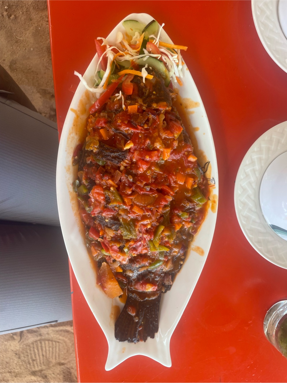 Richard met us in our “posh” hotel and we headed to this awesome nightclub right on the beach. He wanted to take us to Lake Victoria which is a huge lake that is surrounded by Kenya, Tanzania, and Uganda. We were right there on the shore - it was just beautiful! We took a Bolt there (the equivalent of uber) and sat on the patio and ordered food, of course fish. Tilapia is the primary fish here, and Liz and I shared a tilapia with coconut and vegetable sauce and ugali. This was Liz’s first real helping of ugali - mixed reviews. She said that it wasn’t like I described it (air in solid form); she didn’t like it because it didn’t taste like anything but she also didn’t hate it for the same reason. It definitely doesn’t taste like corn though it is made rom cornmeal. The waiter delivered the fish and left and Richard was like “are you gonna start?” Welp we were just waiting for silverware but that wasn’t coming. There is a handwashing station literally on the patio so you can wash your hands because you eat with them. We asked for a fork because how do you eat a whole fish without a fork, but that might have been the most mzungu thing we did all day. Speaking on mzungu- this place is so different from everywhere we have been- literally no white tourists here- we saw one white person from afar. But it is so cosmopolitan that people weren’t yelling “mzungu” at us either.