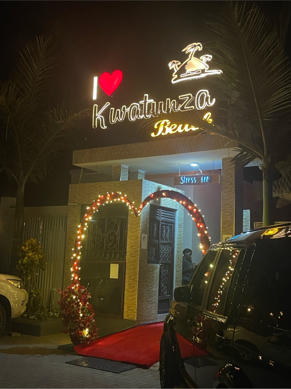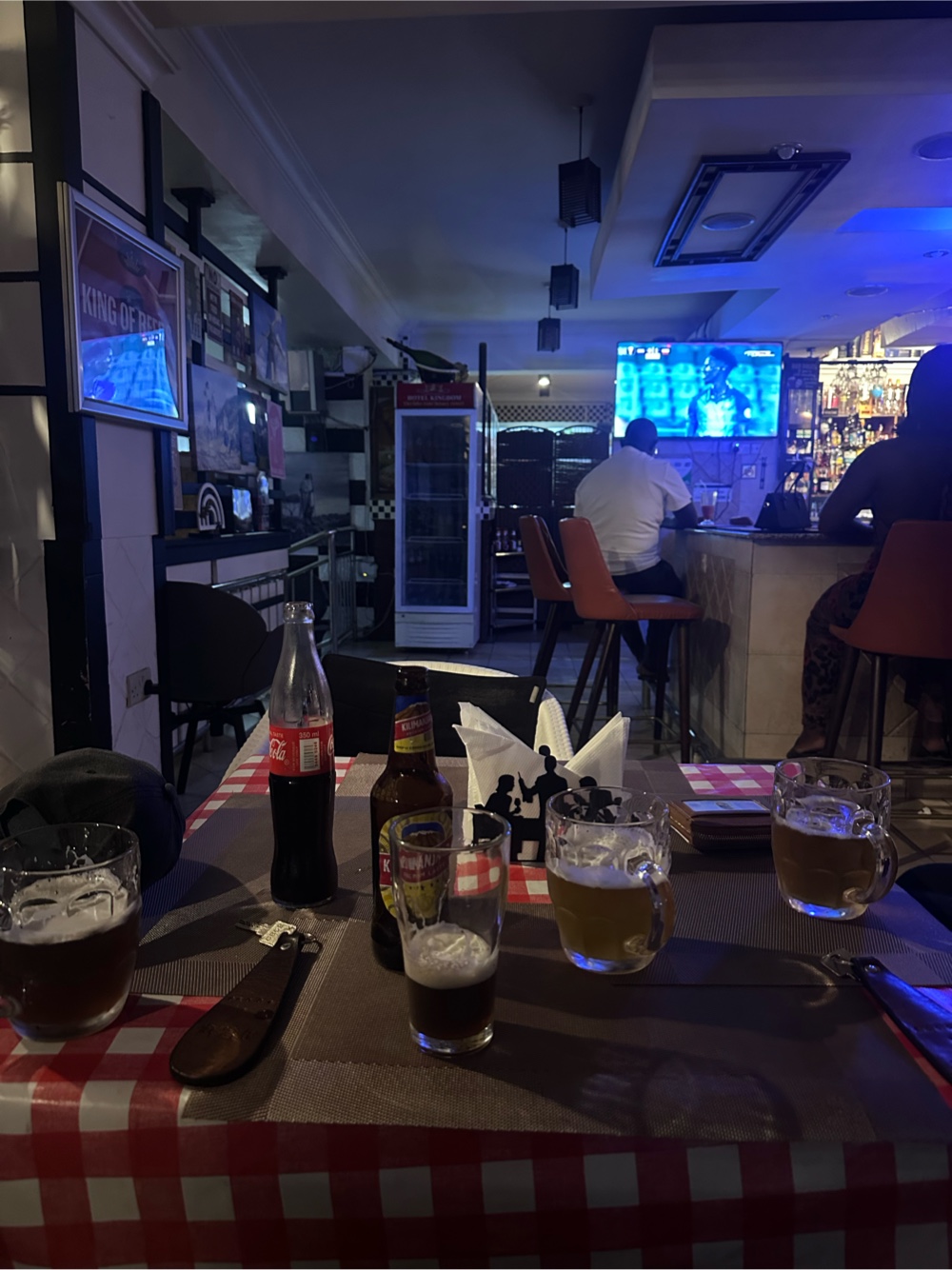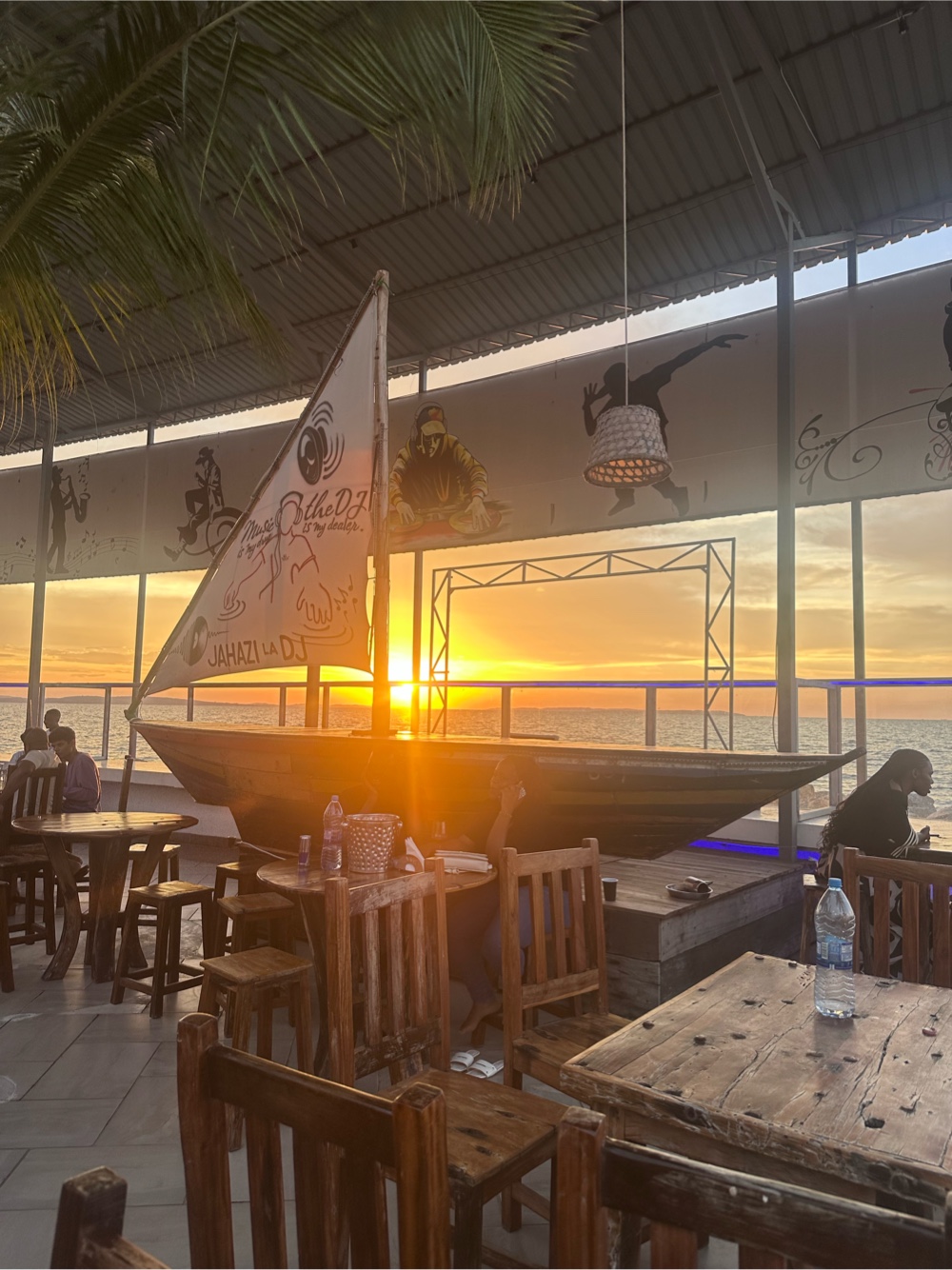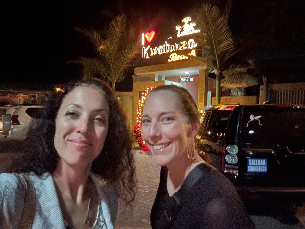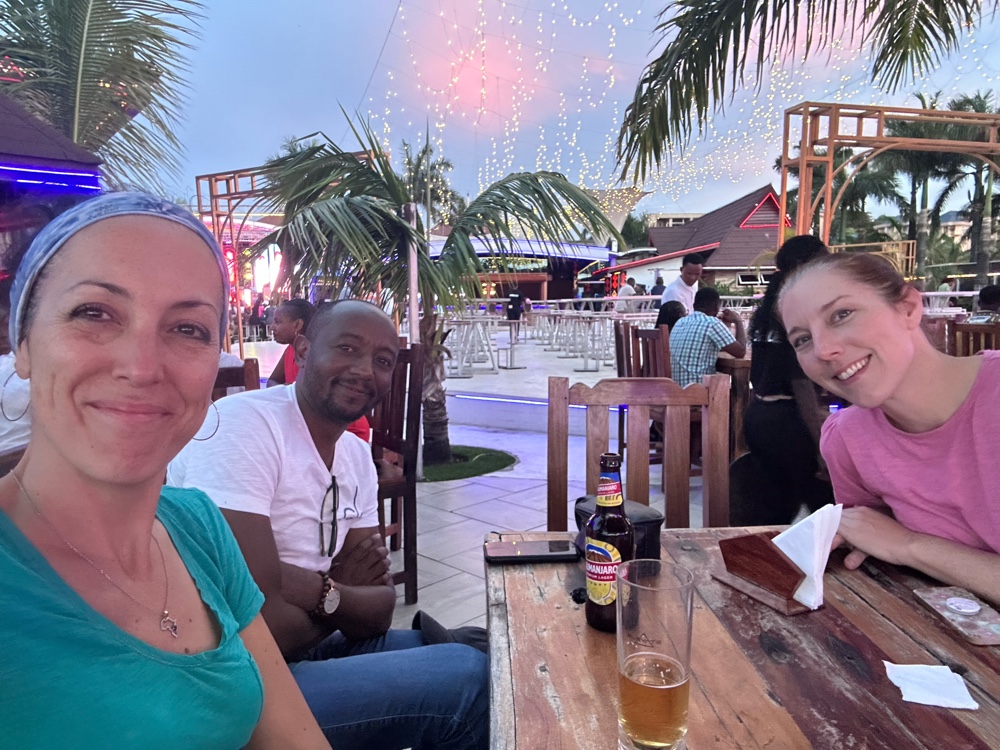 The club we were at had live music set up with a woman who had an amazing voice and a guy who had a less than amazing voice performing. There were dancers and a dj also but there was a football game on a huge screen right behind the performers which was interesting and definitely would have bothered me if I was performing. It was super loud everywhere we looked at sitting but maybe that’s just us being old. We ended up leaving for Richard to show us a cool hotel but it was closed for a private event- a university homecoming king and queen type contest which was Tsh 10,000 to get in (this is about $4) so we went back to Kwatunza Beach for a few beers (it’s Kili time!). Kwatunza Beach was so different than Dar in 2005. From the fancy metal patio chairs to the fact that there were some groups of women going out together without men, it seemed like it could have been anywhere on the coast in the US. Back at the hotel, very interesting design. It almost seems like the exterior was designed before the interior, there are a lot of odd nooks and crannies here.