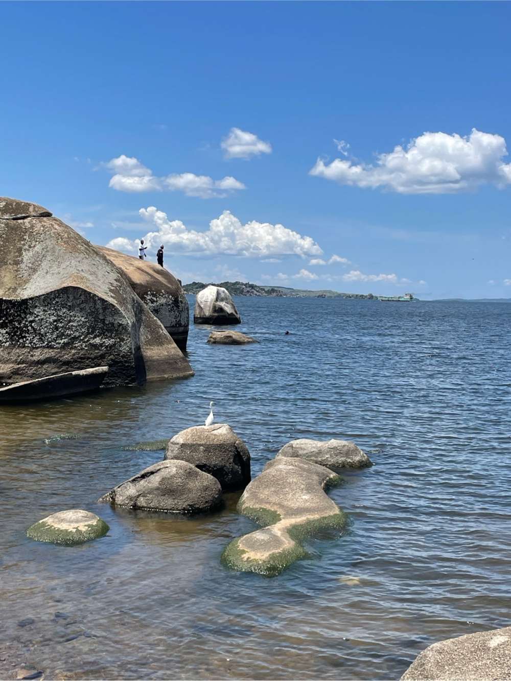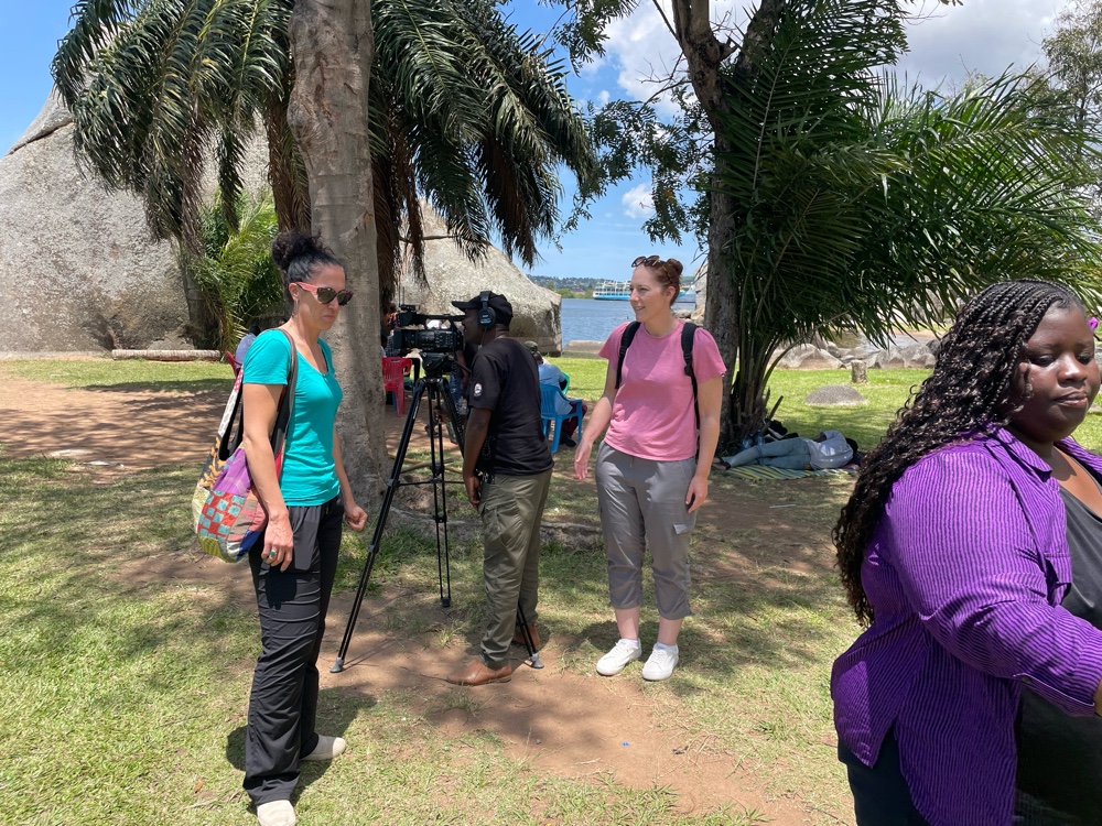 We had a very lazy morning chatting before we got into a bolt and started our day. Our first stop was the atm, because here you can just ask your driver to wait for you as you get out to do whatever. Then we went to the shore of Lake Victoria - a place called Bismark rock. We got out of the bolt and Richard asked him to wait for us while we checked it out. There was a cover charge to visit this public park (seemed odd but fitting with everywhere else here that has a cover charge). We were considering taking a boat to an island off the shore and to the fish market but this guy wanted over $100 for it, we bargained him down to $50 but then decided to go get lunch first. While we were at Bismark Rock there was a journalist and a camera guy setting up. Liz asked - um are we the news here? And it turns out we were. The woman who approached us was named Shalom and she was making a tourism video celebrating the lake zone of Tanzania and asked us to be in the video to speak from the heart about how we enjoyed Mwanza and the Lake Zone. Of course we said yes again. I wish I could remember the name of the program, because we may never see our big international debut!