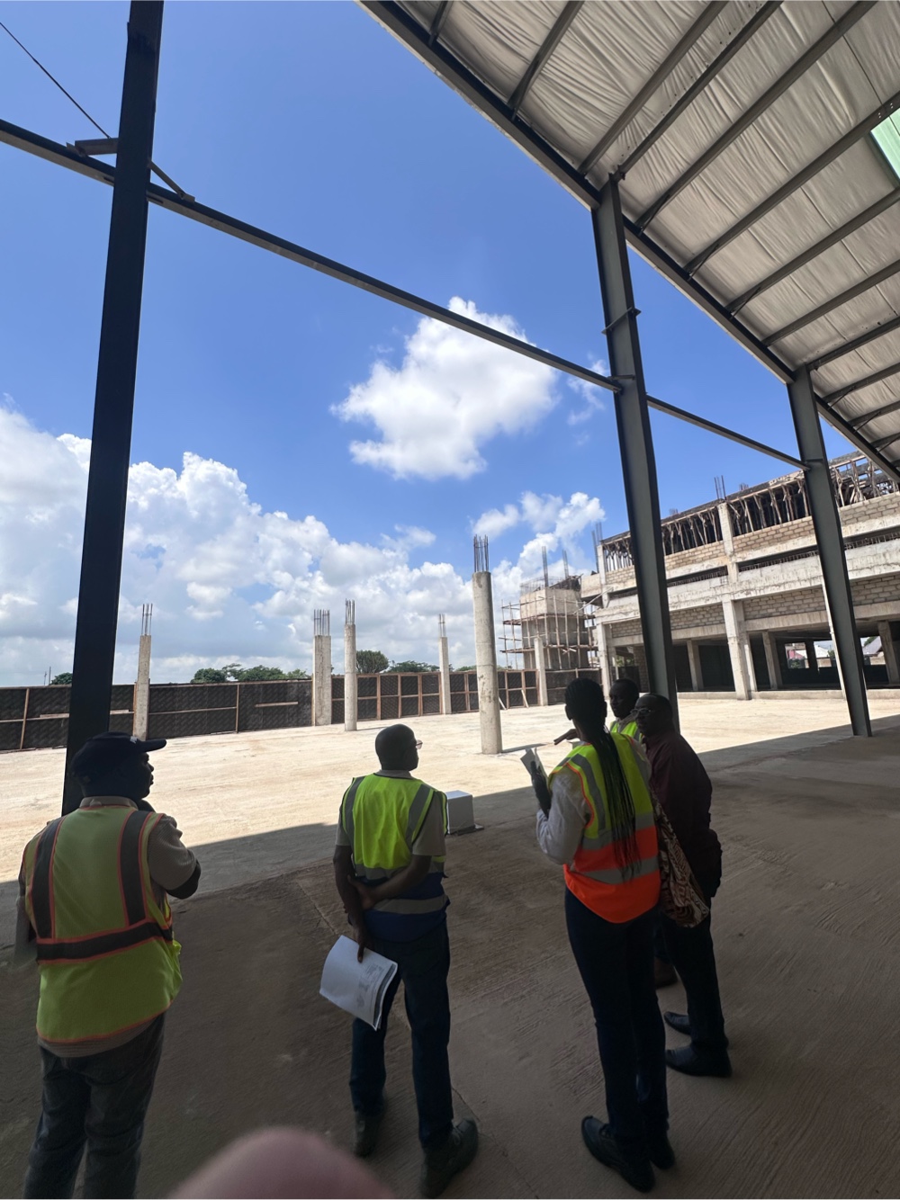 The project Violet is supervising is a large complex called The National Prayer Conversional Center. It is led by the famous Tanzanian preacher Christopher Mwakasge and will accommodate 15,000 people from around the world for one week in August when complete. The structure for the campus is currently in progress but the main auditorium structure is complete, by an Egyptian steel subcontractor. The sheer size of the auditorium is impressive. They anticipate being complete with all of it in about 2030. The site meeting was Violet and the structural engineer along with the Owner’s rep and 2 of the Contractors. They call each other by their title, so Violet was Architect, the GC was Contractor, etc. I was impressed that this project was being built with a local contractor which is different than the last project I had seen of Violets (which is coincidentally on hold and doesn’t look much different than it did in 2017). There were about 20 people working on site at this job, and if this was in the US there would her been hundreds. In Tanzania, there are not as many subcontractors, the GC hires out day laborers. Also, projects go on hold often here because the financing for the whole project is usually not secured when projects start. Lastly, there were a lot more decisions made by Ownership on site that would have wreaked havoc on American job sites. The GC was open to making changes in realtime, and I mean big changes, like adding a mezzanine to a double height space. The drawings seemed to be more sparse than our drawings in the US as well. I believe most architects here use ArchiCAD instead of Revit, but it is a BIM software nonetheless.
